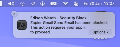 The Trifecta: When an AI has seen private data AND fetched external content, Edison Watch requires approval for any write operations to prevent data leaks.